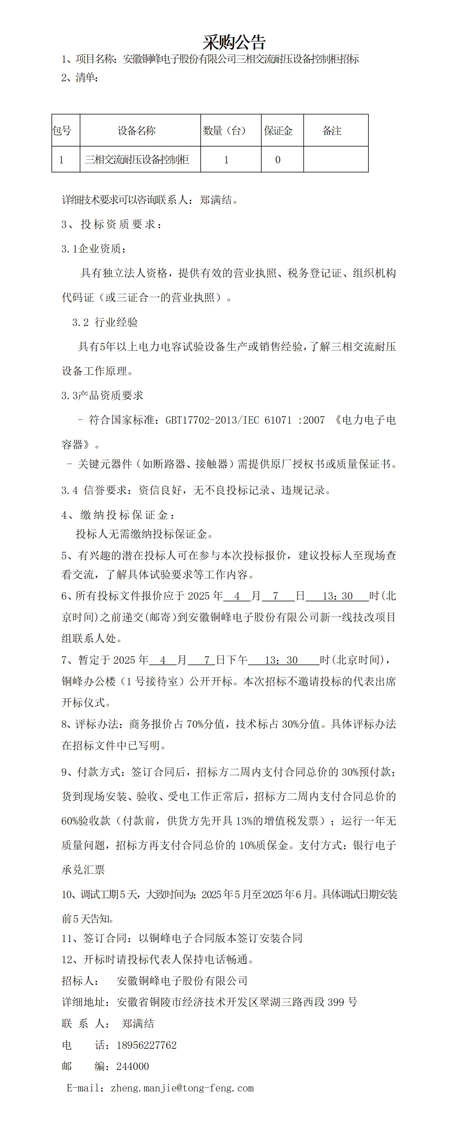 三相交流耐壓設(shè)備控制柜采購公告_01