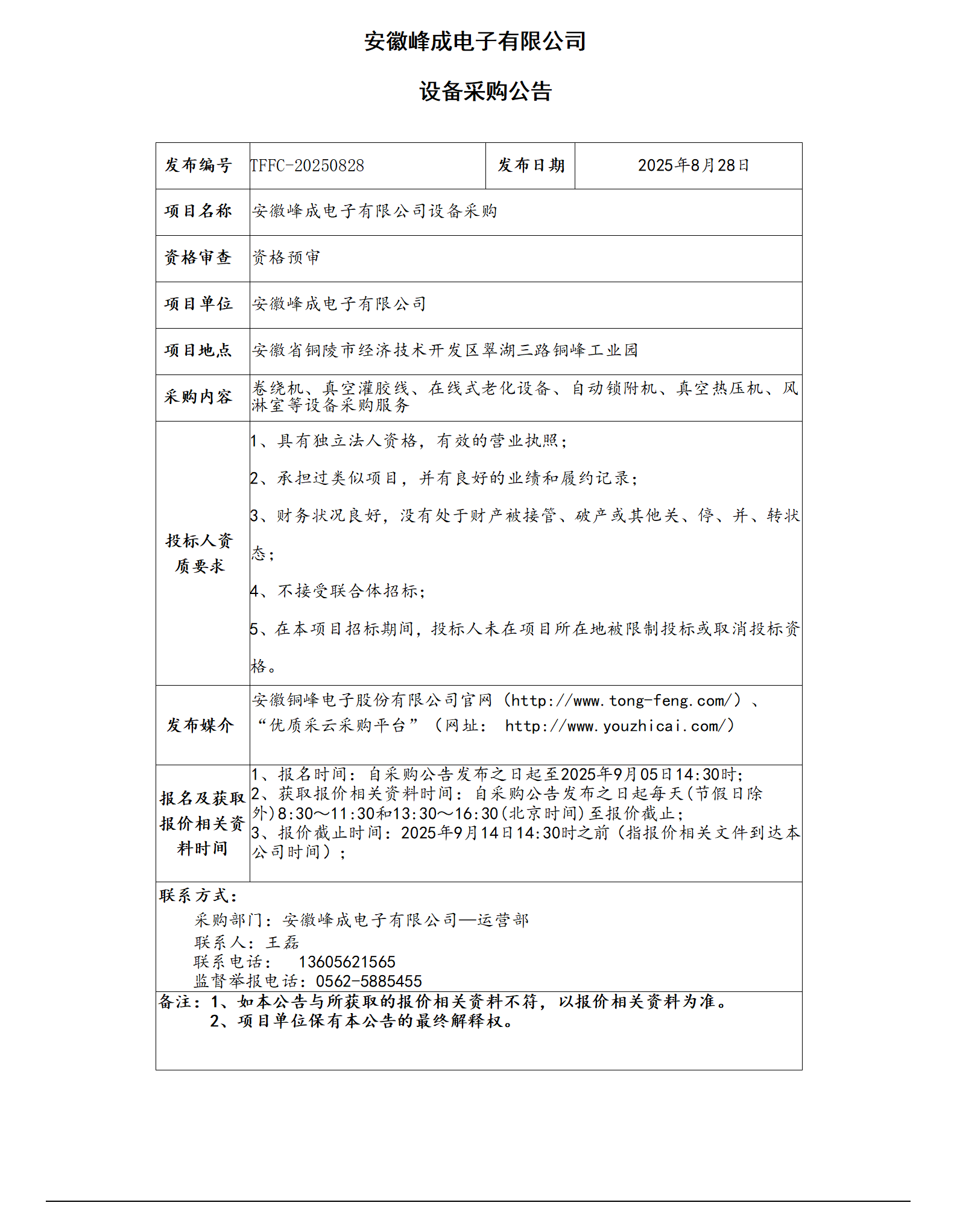 安徽銅峰電子股份有限公司 (銅峰電子1#配套用房屋面防水工程 招標公告)_01