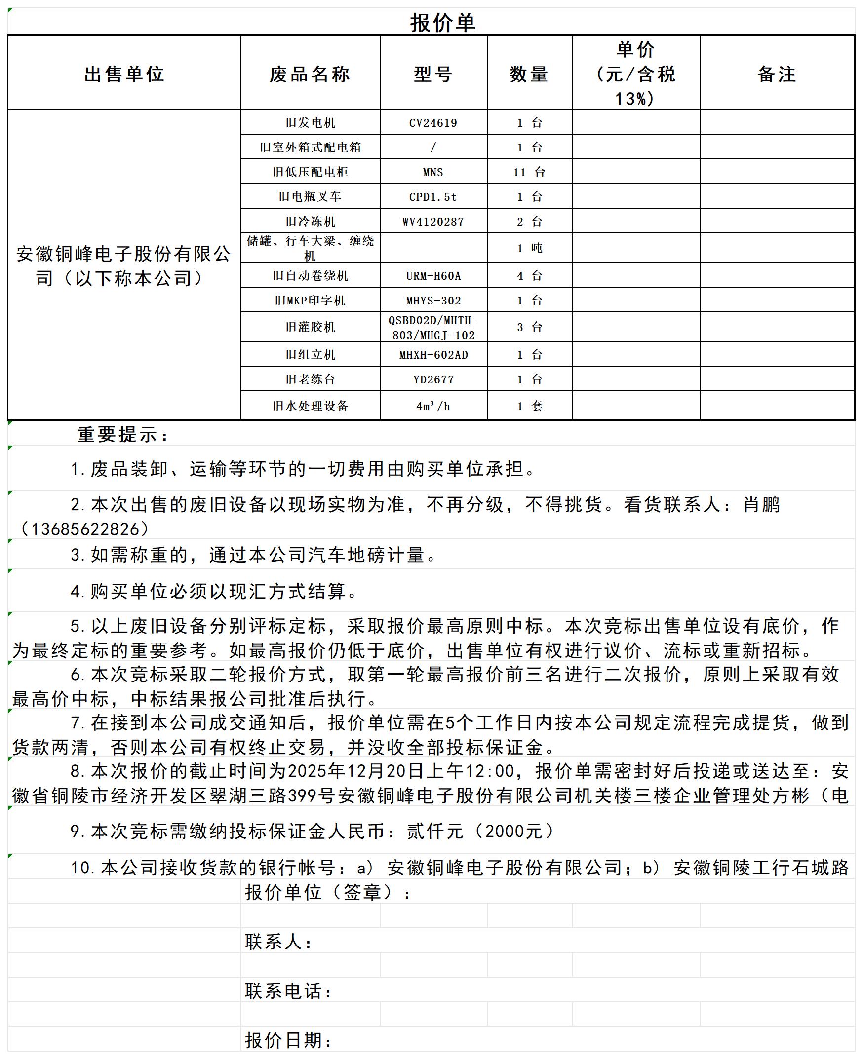 安徽銅峰電子股份有限公司 (備件公告)_01