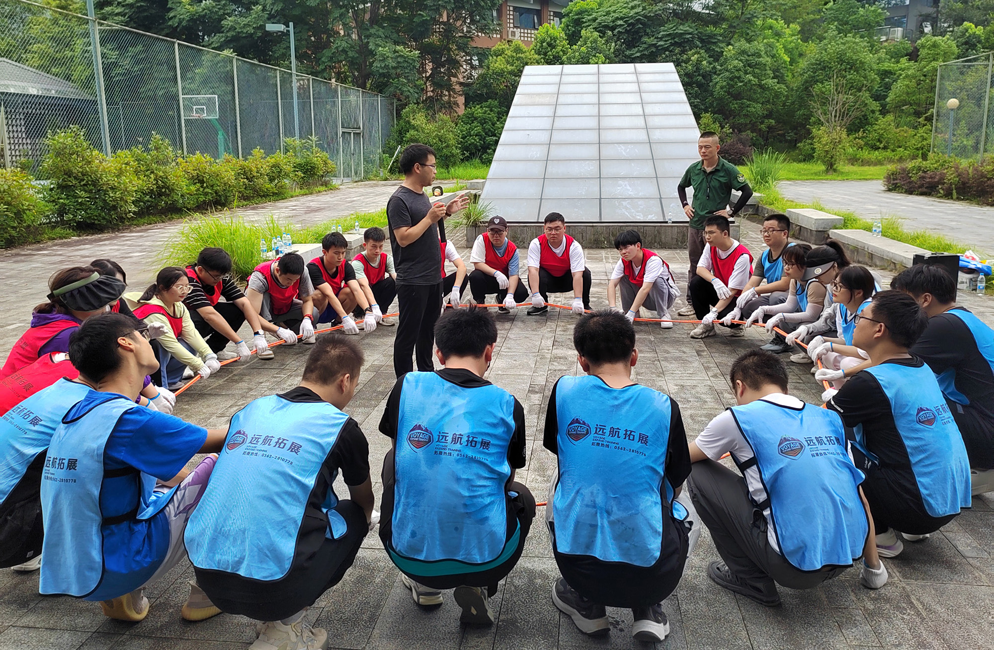 拓展培訓(xùn)活動(dòng)在教練的專(zhuān)業(yè)指導(dǎo)下有序進(jìn)行:新入職大學(xué)生分為2個(gè)小組,由組長(zhǎng)牽頭合作創(chuàng)建了屬于自己的團(tuán)隊(duì),為各自的團(tuán)隊(duì)設(shè)計(jì)隊(duì)名、隊(duì)歌、隊(duì)旗及口號(hào),并共同完成瘋狂市場(chǎng)、急速60秒、雙解碼及生命動(dòng)力圈等一系列活動(dòng)。