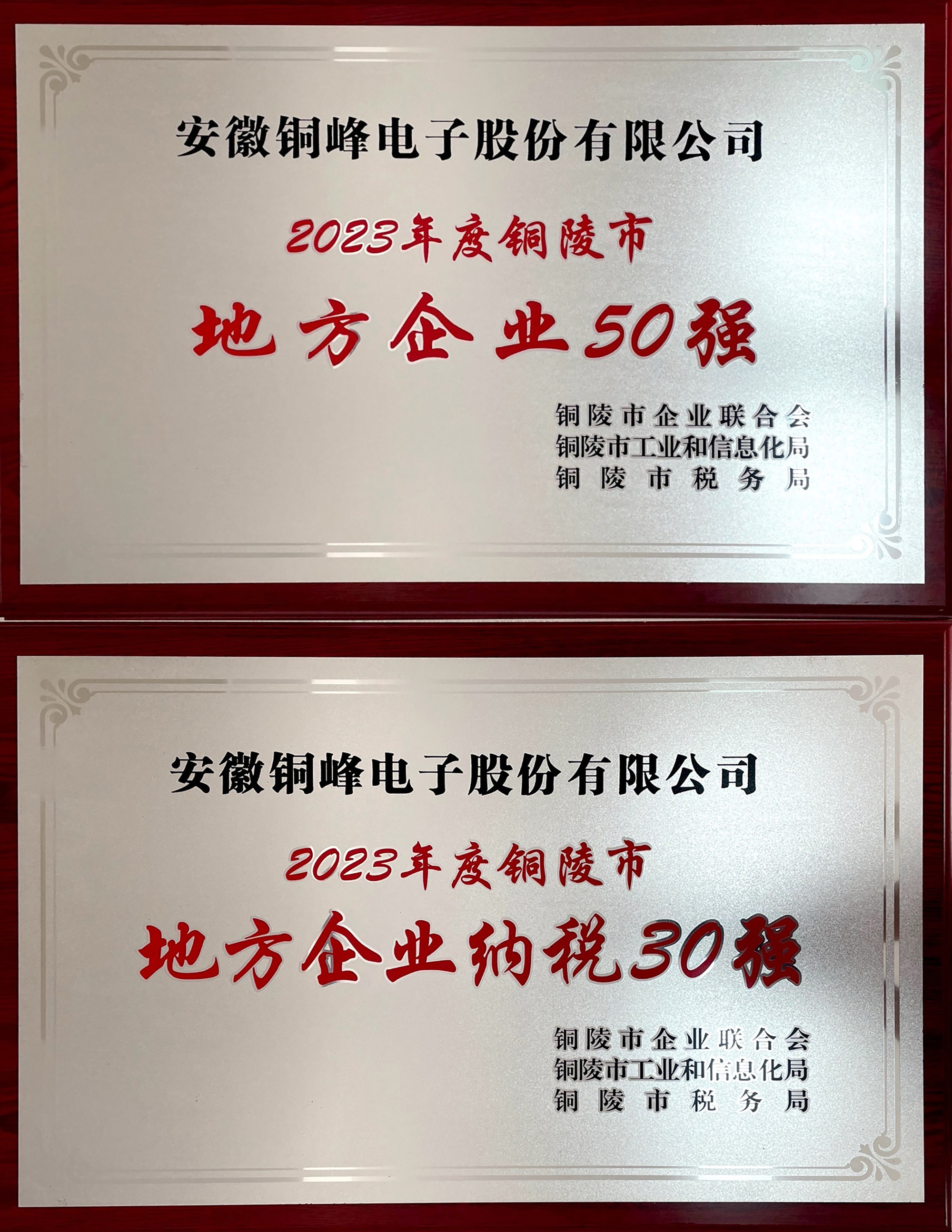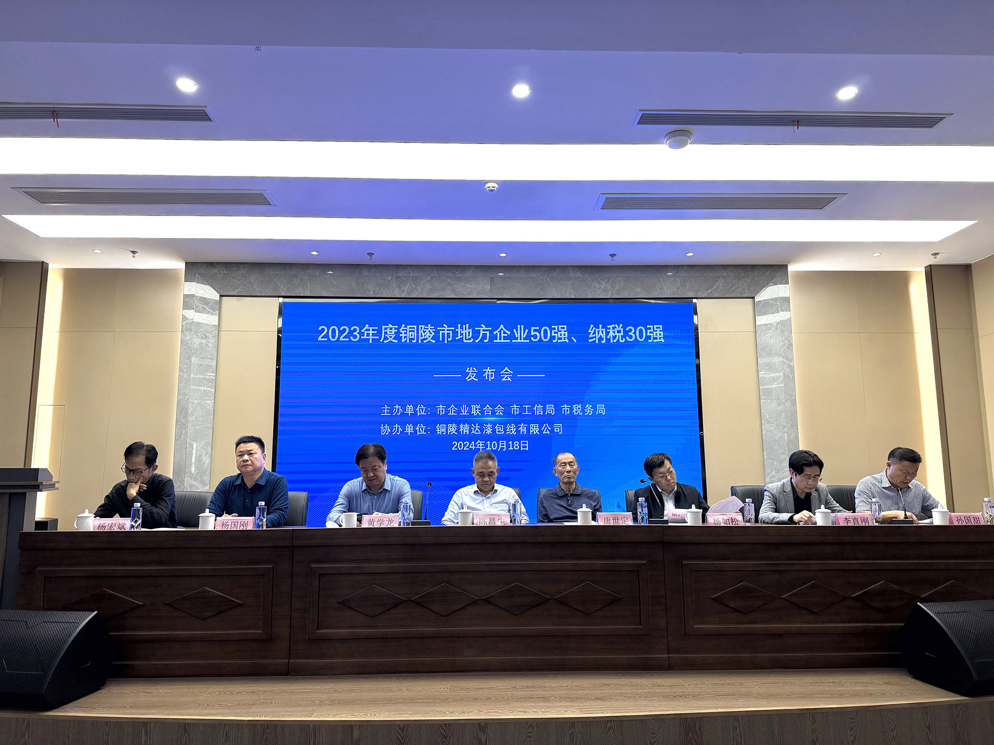 10月18日,由市企業(yè)聯(lián)合會、市工信局、市稅務局主辦的2023年度銅陵市地方企業(yè)50強、地方企業(yè)納稅30強發(fā)布會舉行,公司再次榮獲“地方企業(yè)50強”“地方企業(yè)納稅30強”兩項榮譽。公司副總經(jīng)理、財務總監(jiān)郭傳紅代表公司現(xiàn)場領取榮譽牌匾。
