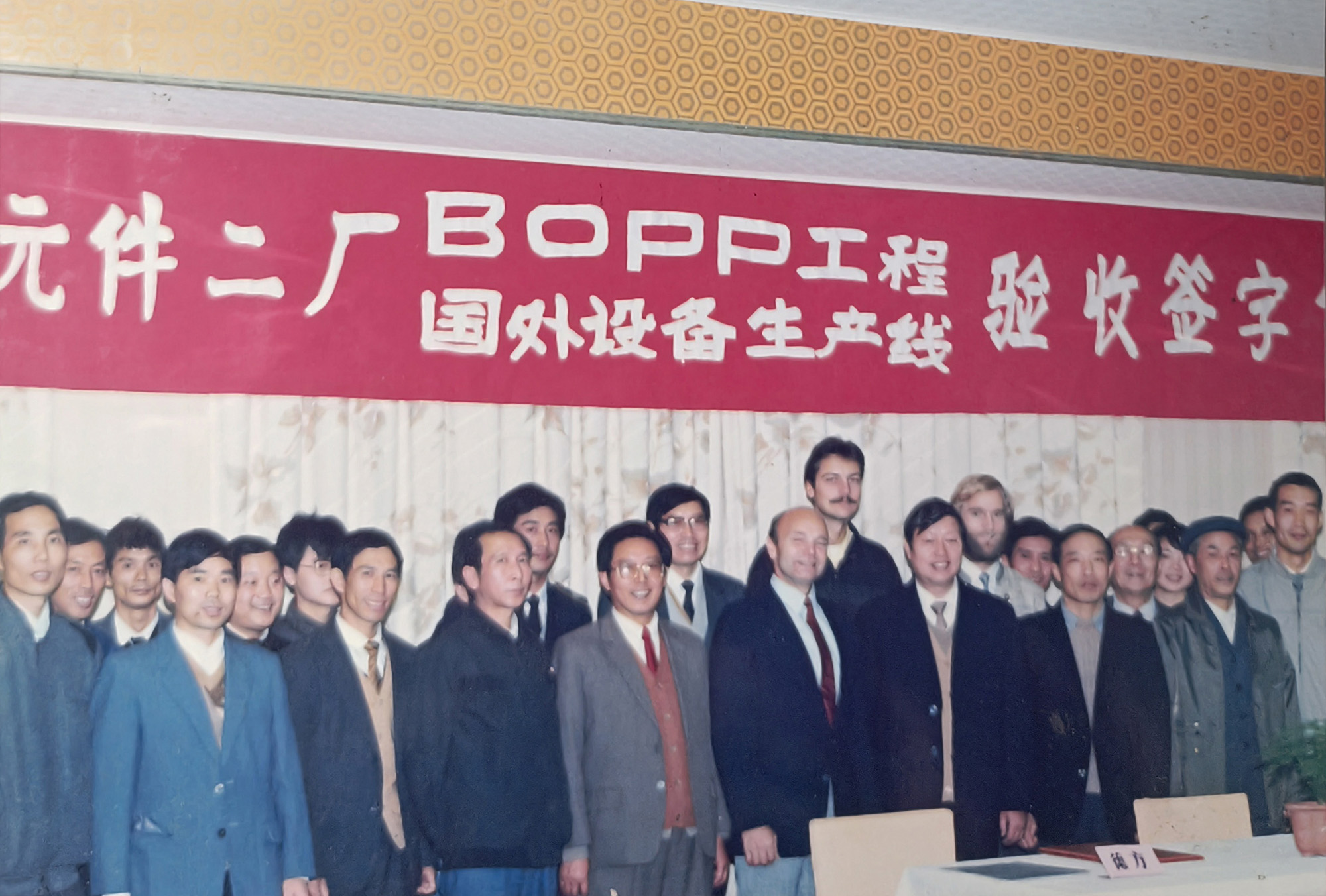 銅峰“老一線”于1989年建成投產(chǎn)。上世紀80年代,當時國內(nèi)電容器用聚丙烯膜幾乎完全依賴進口,嚴重制約了我國電容器等相關(guān)產(chǎn)業(yè)的發(fā)展。銅峰公司前身銅陵市無線電元件二廠積極響應(yīng)國家需求,決定從國外引進雙向拉伸電容器用聚丙烯膜生產(chǎn)線。1985年項目啟動,經(jīng)過一系列籌備工作,1986年獲得國家計委批準立項,并被列入國家 “七五” 機械電子工業(yè)重點技改項目。1988年,主線和相關(guān)輔助設(shè)備成功引進。經(jīng)過一年多的緊張建設(shè),1989年生產(chǎn)線正式投產(chǎn)?!袄弦痪€”的建成投產(chǎn),是銅峰發(fā)展史上具有重要意義的轉(zhuǎn)折點。該線加速了銅峰公司產(chǎn)品結(jié)構(gòu)調(diào)整和轉(zhuǎn)型步伐,并由此形成了全國唯一的“電工三膜”(電容薄膜、金屬化膜和薄膜電容器)一條龍的生產(chǎn)格局,使企業(yè)的經(jīng)濟規(guī)模和技術(shù)水平躍上一個新臺階。